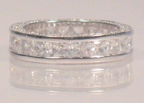 2.50 Ct Princess Eternity Band, Stackable Wedding ring, Pave set,14k white gold Finish, 925 Solid Sterling, Diamond Simulants, Antique Style
