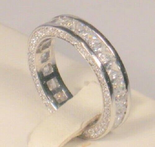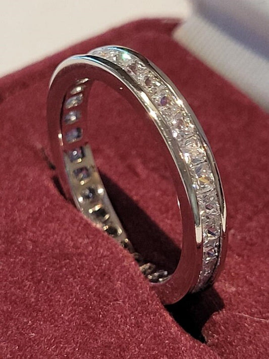 2.50 Ct Princess Channel set Eternity Band,Wedding ring, Pave set, Diamond simulants, 925 sterling silver,White Gold finish, 5mm Comfort fit