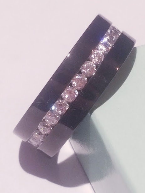 Mens Wedding ring,Mens Black Titanium Wedding Band, 2 Ct Round cut Eternity Band,Mens Eternity band, Mens anniversary gift,Gift for husband