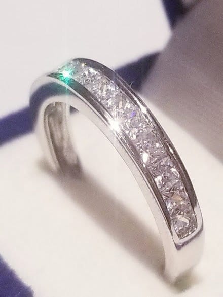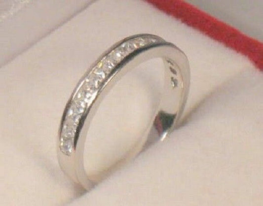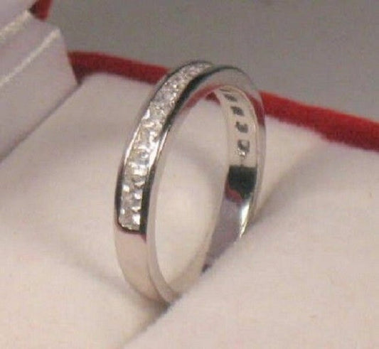 Princess Channel set Band, Half eternity Band, Stackable bridal Wedding ring, Diamond simulants, 925 sterling silver, 14k White Gold Finish