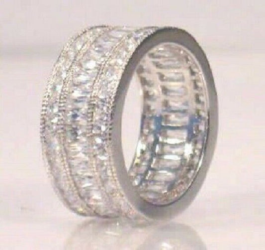 Princess Baguette Eternity Band Stackable Wide Wedding band ring 14k white gold Finish Solid Sterling Statement ring Womens Bridal wedding