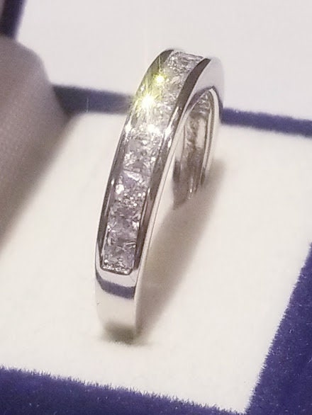 Princess cut VVS1 Moissanite Half eternity anniversary Band, bridal Wedding ring, Moissanite Diamonds in sterling silver, Wedding Band ring