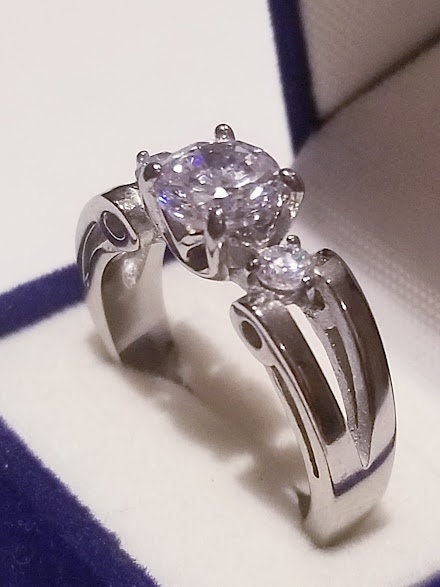 Clearance Sale Round cut Solitaire 3 Stone Engagement ring or Bridal Promise ring cz stainless steel Anniversary wedding gift Travel Jewelry