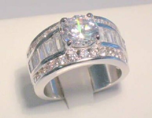 Clearance Sale Round Solitaire Baguette Engagement ring or Bridal Promise ring cz stainless steel Anniversary wedding gift Travel Jewelry