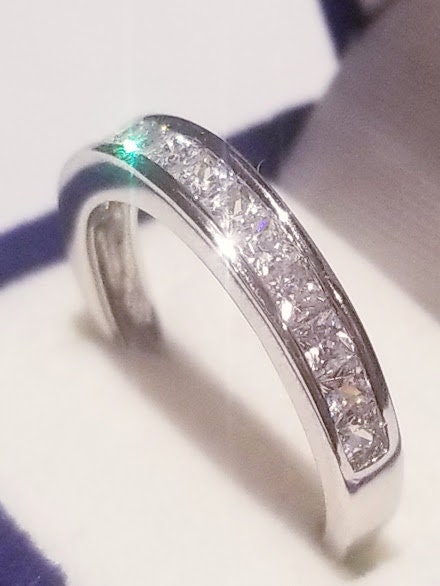 Princess cut VVS1 Moissanite Half eternity anniversary Band, bridal Wedding ring, Moissanite Diamonds in sterling silver, Wedding Band ring