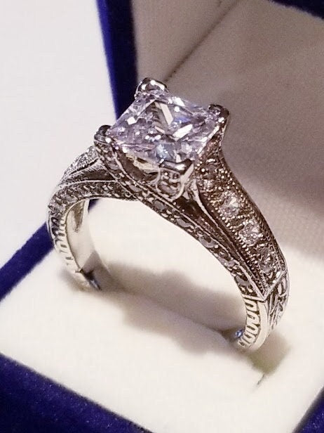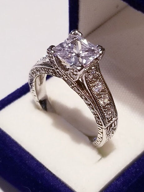 2.50 ct Princess cut Solitaire Engagement Ring, Antique Style, Wedding Promise Ring, Anniversary Gift, Vintage design setting, gift for her
