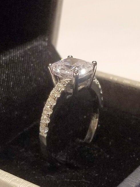 Sterling Silver Engagement ring, Cushion cut Engagement, Silver Promise Ring, simulated Diamonds,bridal wedding jewelry, travel wedding ring