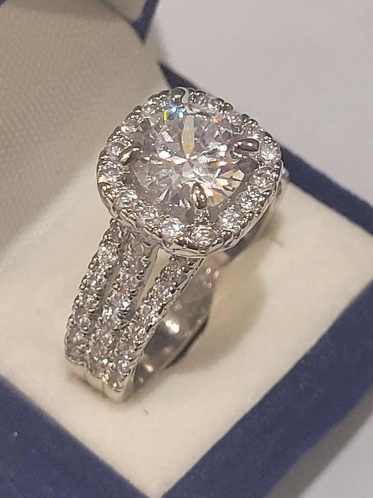 Clearance Sale! 1.50 Ct Round Solitaire CZ Engagement Bridal Promise ring Round Accent Stones Pave setting in stainless steel Travel Jewelry