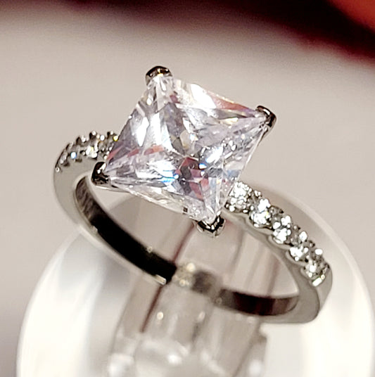 Clearance Sale 3.00 Ct Princess cut Solitaire Engagement ring Bridal Promise ring cz stainless steel Anniversary gift Travel Wedding ring