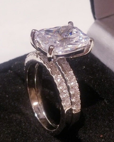 4.00 Ct Princess Diamond Engagement Ring, Wedding Ring Set,Interlocking Bands, Womens Bridal Set, Diamonds simulated, 925 Solid Sterling