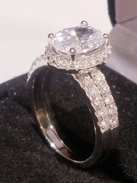 Oval Engagement Ring set,Halo Wedding Ring,Oval cut ring,silver wedding ring set,womens wedding set,simulated Diamonds,Halo engagement ring